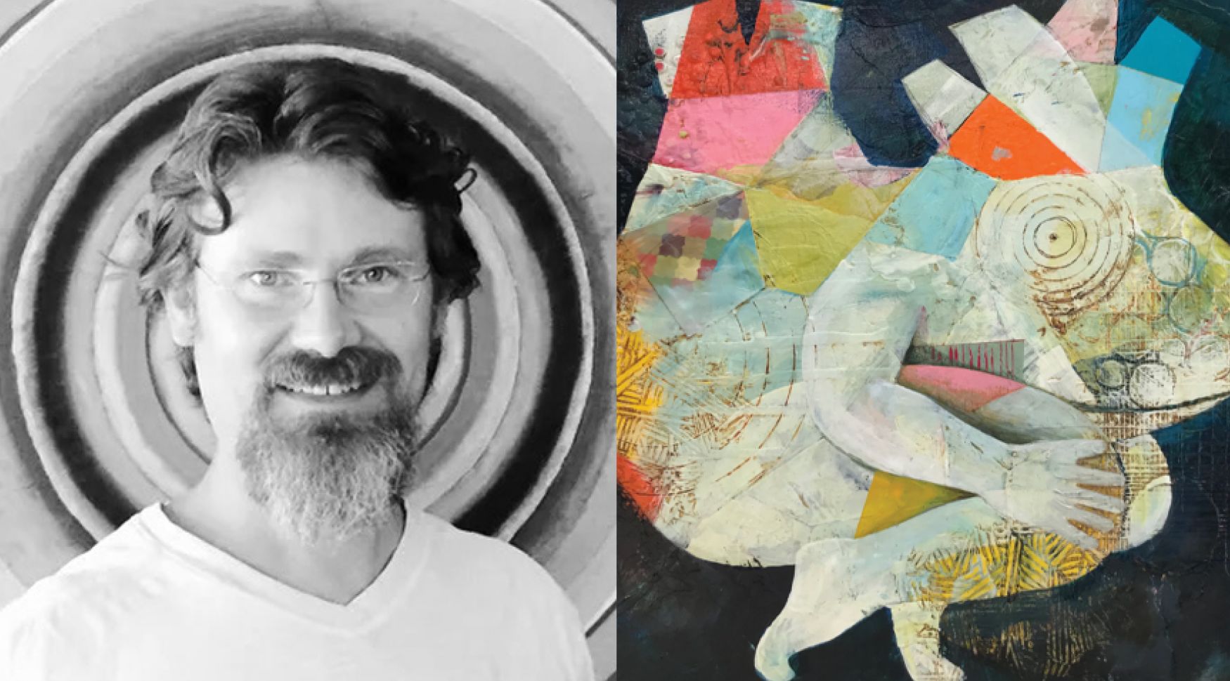 As an abstract artist in Northwest Connecticut, Tom works primarily in acrylics, mixed media, and collage. His paintings are grounded in a sense of belonging and the paths we travel throughout our lives. The concepts of home and relationships are very important to him and are often depicted with meandering, intersecting lines.