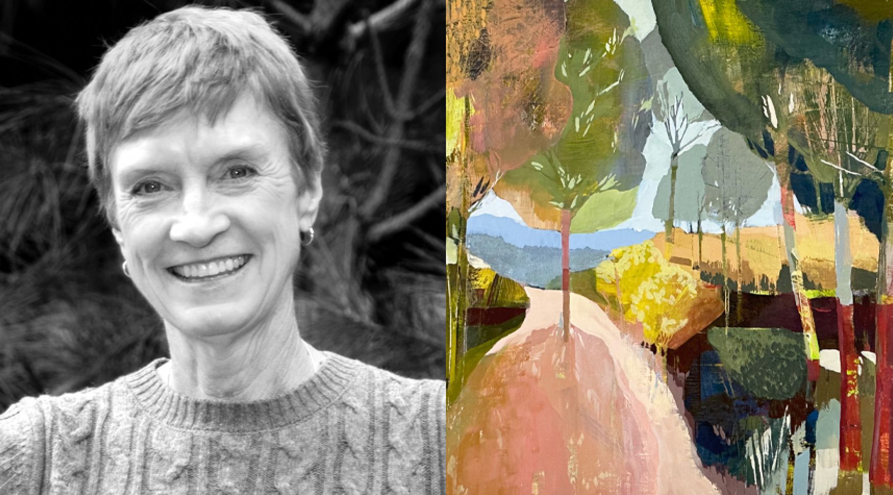 Nadine Johnson is a Calgary-based abstract painter whose work grows from layers of color, collage, and lived experience. She paints intuitively, letting memory, place, and personal history guide the process, a slow unfolding where each mark influences the next. Her paintings draw from the things she carries with her: florals, prairie horizons, old fences, family stories, and the quiet textures of remembered places.