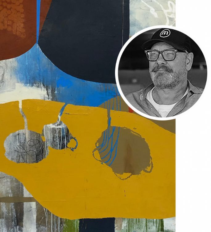 As an abstract artist in Northwest Connecticut, Tom works primarily in acrylics, mixed media, and collage. His paintings are grounded in a sense of belonging and the paths we travel throughout our lives. The concepts of home and relationships are very important to him and are often depicted with meandering, intersecting lines.